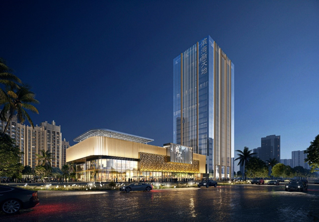 中國電建大灣區科創中心基地位于廣東省廣州市花都區,是由中電建(廣州)城市投資發展有限公司投資開發建設。該項目幕墻形式主要包括玻璃幕墻、鋁板幕墻等,總建筑面積約為62000平方米,幕墻面積38000平方米,建筑高度為162 1米。該項目是一棟超高層辦公樓,建成后將打造成為具備總部基地的地標性建筑。??跒I海新天地商業綜合體 位于海南省海口市,是由